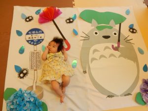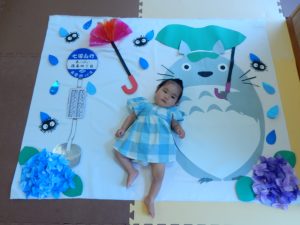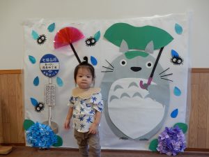 今月のテーマはトトロ。傘を差し、梅雨らしい写真となりました。