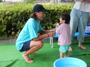 アニマルハンター、かき氷製作、ボーリングなど楽しんだ後はスイカ割り!