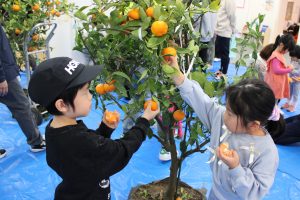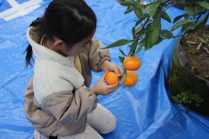 2025.12.17 食育 【すくわく】みかん狩り すくわくプログラムの一環として「いどう果樹園」さんに来ていただき、 みかん狩りの体験をしました。 自分で選んだみかんをくるくるとまわして採ります。 採ったみかんをその場でぱくり。甘くて美味しい! 楽しく、貴重な体験ができました。 収穫したみかんを使って、後日食育でジャム作りをしました。 記事一覧へ戻る