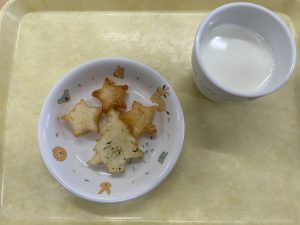 おやつも、いつものフライドポテトと少し違う星とツリーの形でした。