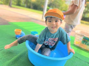 8月の水遊びもダイナミックにたくさん遊び、全身びし...