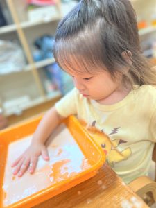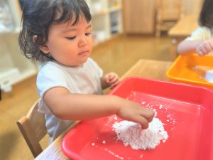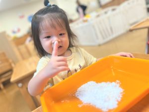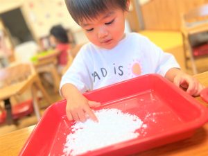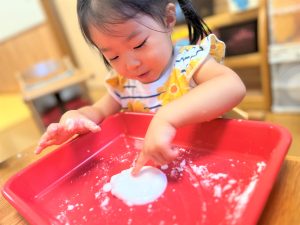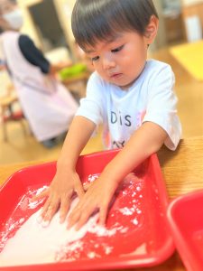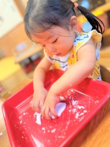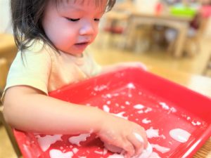 初めての感触に最初は戸惑っていましたが、両手にたっぷりつけて楽しんでいました✨
