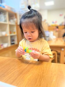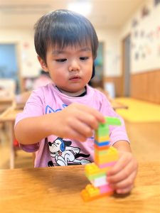 ミニブロックも組み立てを自分だけで出来るようになり、指先の使い方が上手になりました🎶