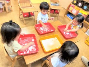 うさぎ組は片栗粉スライムをしました。