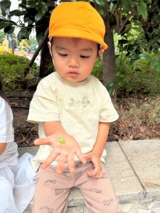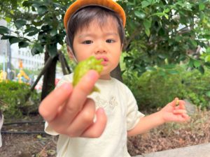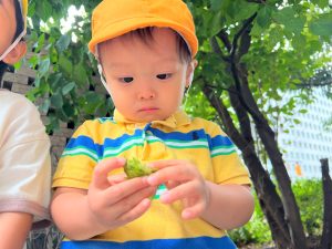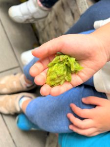匂いを嗅いでみると…少し独特なにおいのホップに苦い顔の子どもたちでした😖笑