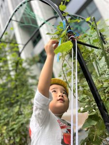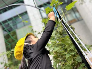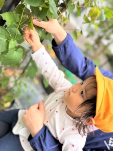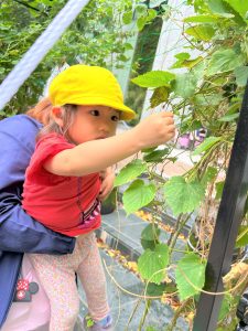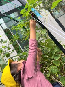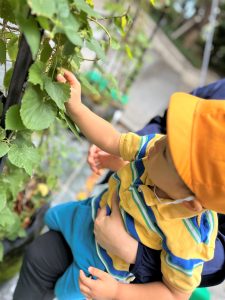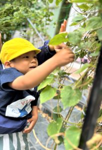 そして、ホップの実の収穫開始!!実は少し小さめでしたが、めいっぱい腕を伸ばしたり、葉っぱの隙間を探して見つけている子どもたちの真剣な顔。
