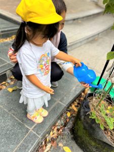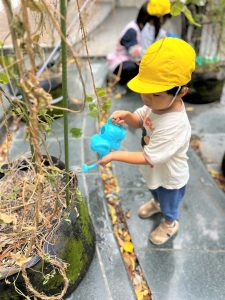 ジョーロをうまく使い上手にお水をあげることが出来ました😊