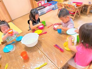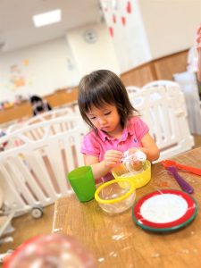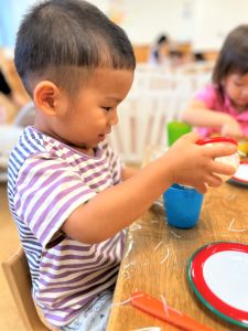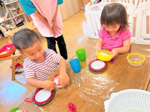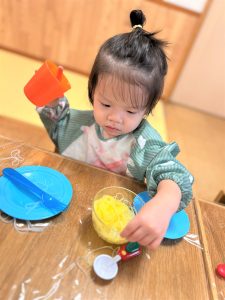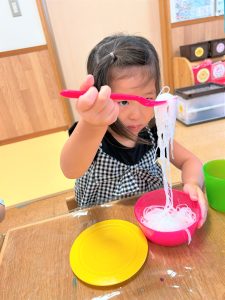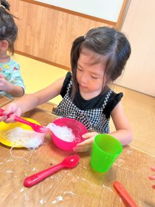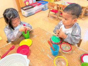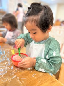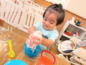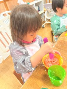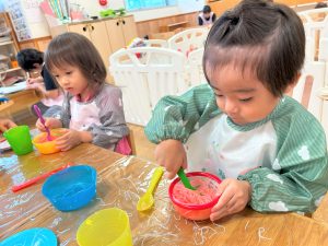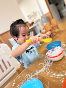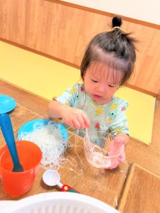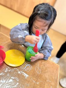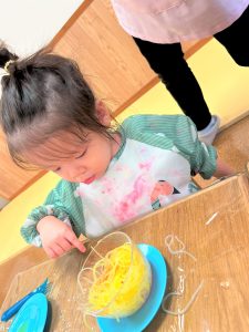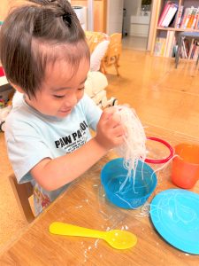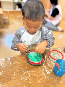 2025.11.13 ブログ 2025年10月 室内遊び 10月も室内遊びを楽しみました🎶 雨の日には、春雨を使い感触遊びもしました! 途中で好きな色の絵具を混ぜて色付けし、「色混ぜたい!」と自分だけのご飯を作りました😄 10月生まれのお友だちの誕生日会も行いました🎂 記事一覧へ戻る