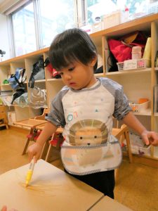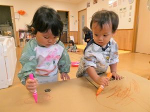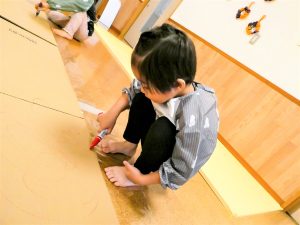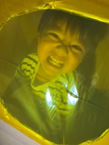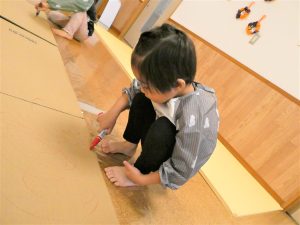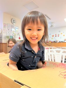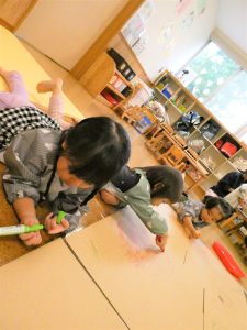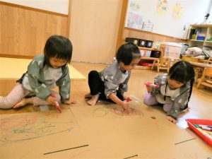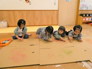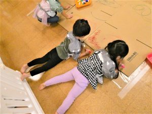 色を塗り終わったら、先生がトンネルを作り、トンネル遊びのスタートです!!!