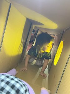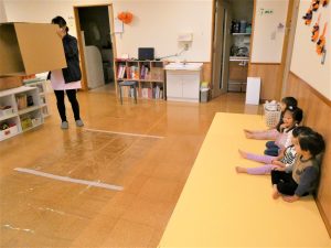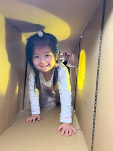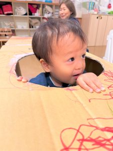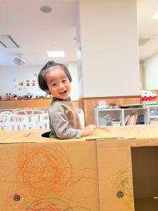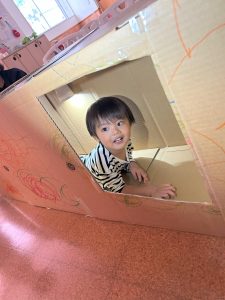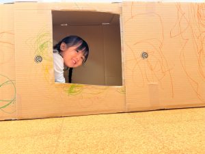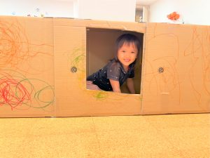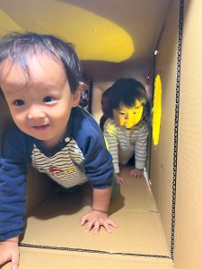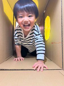 10月のすくわくプログラムは、大きな段ボールを使ってトンネル遊びをしました😊