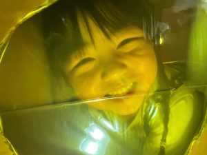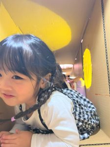 途中の窓からのぞいてみたり、上に開いてる穴から顔を出してみたり…大笑いで楽しんでいました😆