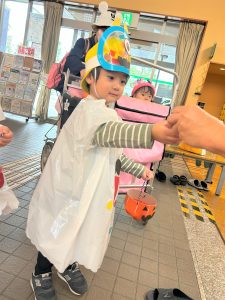 「トリックオアトリート!」と元気に合言葉を言えて、お菓子を貰いました🎶