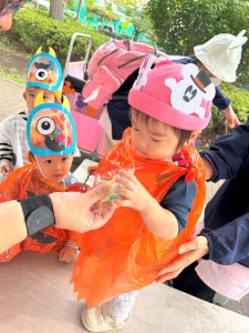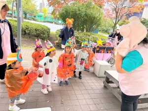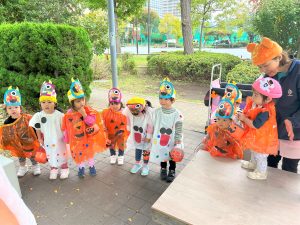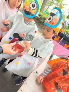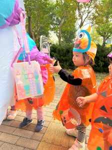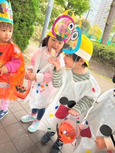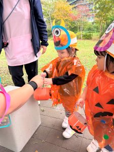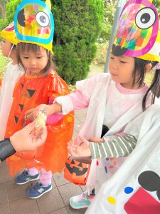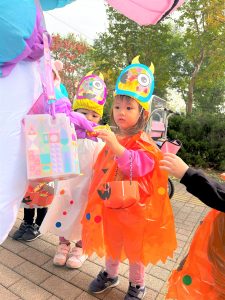 和楽公園ではあっぴぃの先生からいつも食べているのとは違うハロウィン仕様のお菓子に大興奮でした!
