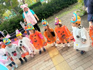 ユニコーンさんとバイバイをして、ハロウィンパーティーを終えると、「たのしかった!!」と笑顔いっぱいの子どもたちでした😆