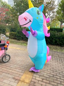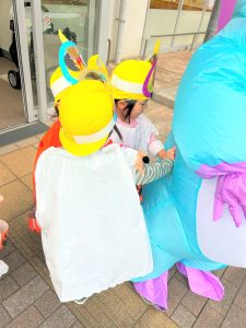 サポートに帰ろうとするとなんと玄関前にユニコーンさんが来てくれていました!!興味はあるものの、これはなんだ?と恐る恐るな子どもたち😯
