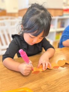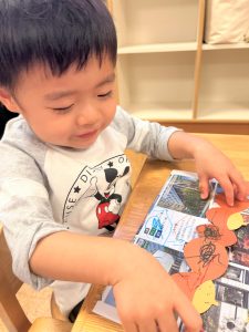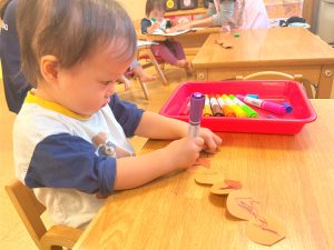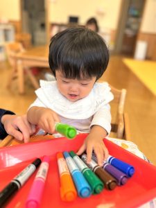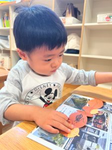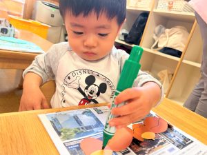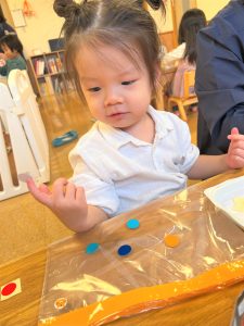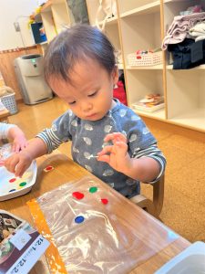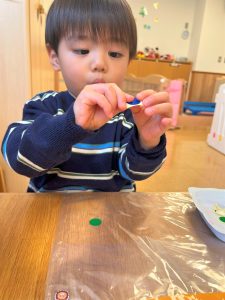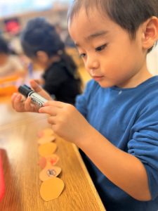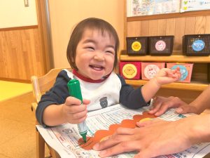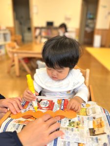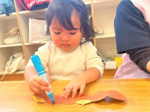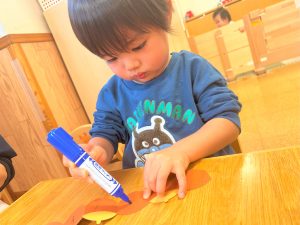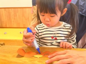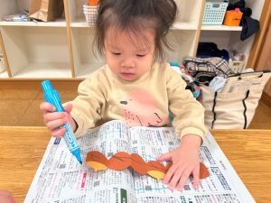 2026.01.08 ブログ 2025年11月 製作~秋探し~ どんぐりスリーブには自分の好きな色を塗ったり、お顔を描いて楽しみました! 落ち葉のバックには好きな色のシールを貼って、どちらもお散歩に持っていきました🍁🍂シールを剥がすのもとても上手になりました☺️ 記事一覧へ戻る