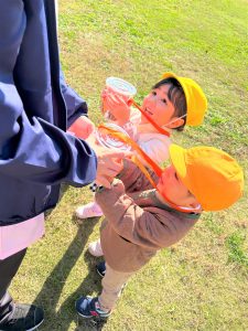 どんぐりを拾えたことが嬉しかった子どもたちは、帰ってくるなり、施設長ににこにこで見せていた子どもたち!興奮冷めやらぬ勢いで、「みてー!これはね!」と話している姿がとてもかわいかったです😆