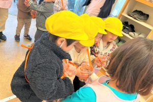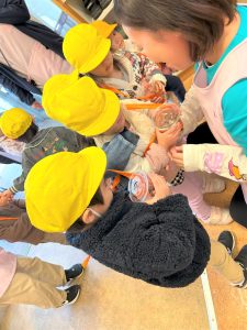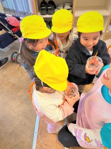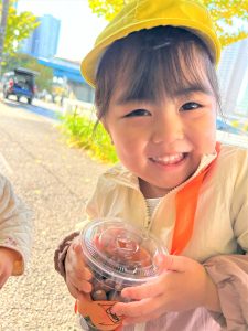 どんぐりを拾えたことが嬉しかった子どもたちは、帰ってくるなり、施設長ににこにこで見せていた子どもたち!興奮冷めやらぬ勢いで、「みてー!これはね!」と話している姿がとてもかわいかったです😆
