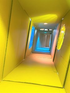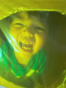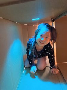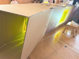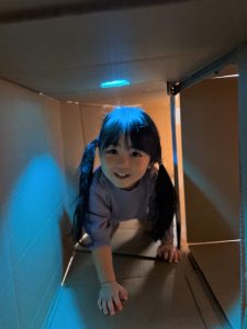 11月のすくわくプログラムは10月のトンネル遊びの続きとして、抜け道を作ったり、トンネルをカーブさせたり、スズランテープのカーテンを付けて、さらにはトンネルの中にも光の色を付けて遊びました✨