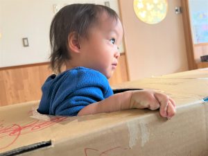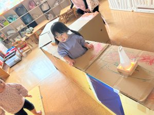 小窓から顔を覗かせてみたり、上の穴から顔を出したり、何度も何度もトンネル遊びを楽しんでいた子どもたちでした😆