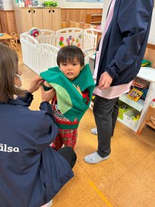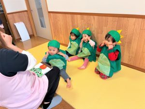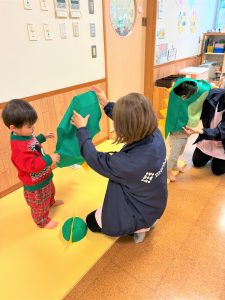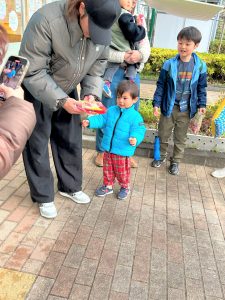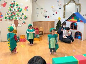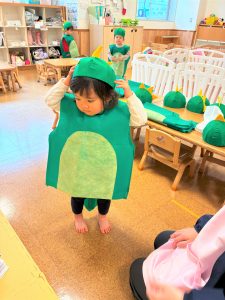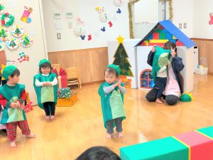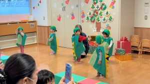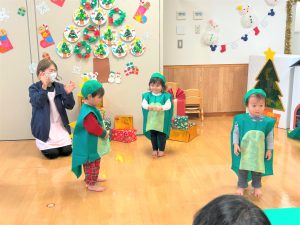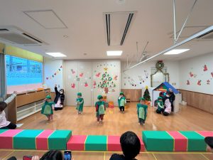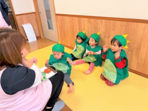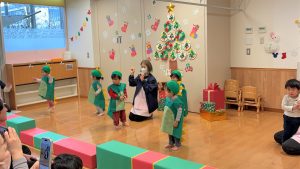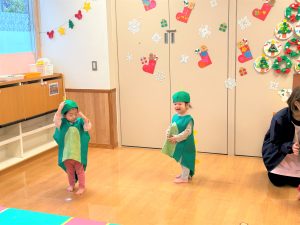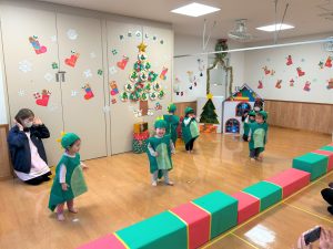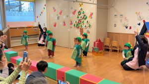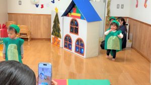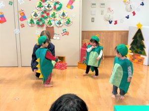 2026.02.06 ブログ 2025年12月 おたのしみ会(うさぎ組) 続いてうさぎ組さんは「やんちゃかいじゅうどっか~ん」を踊りました🎶 お名前を呼ばれるとかいじゅうになりきって「がおー!!!!」と元気よく登場したうさぎ組さん😆 少し緊張気味でしたが、とても上手に出来ました!!! 玄関でユニコーンさんからお土産をもらい、いつも食べているお菓子に大喜びでした✨ 記事一覧へ戻る