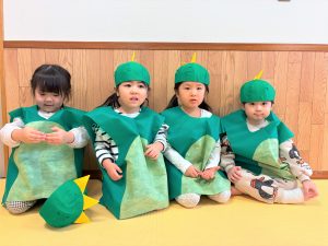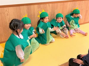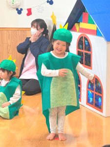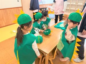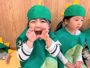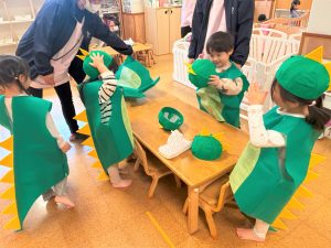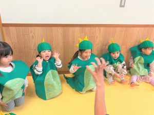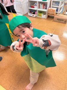 自分の衣装や帽子を被るのも慣れた様子のぞう組さん🎶ワクワクと緊張が入り混じっていました😄
