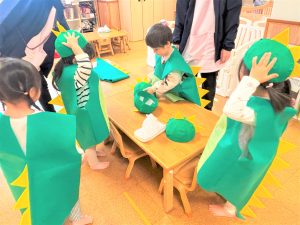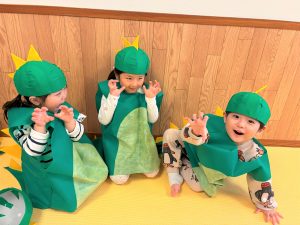 お名前を呼ばれるとぞう組さんも「がおーーーー!!!」とかいじゅうになりきって元気いっぱいに登場!!自分のマークに立ち、やんちゃかいじゅうどっかーんをパワフルに踊りました😝