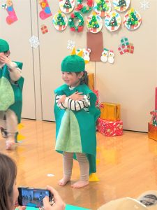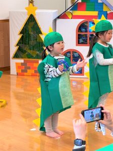 その後はタンバリンと鈴に分かれて「あわてんぼうのサンタクロース」を合奏しました。鳴らすタイミングもとても上手で、歌も大きな声で歌っていました✨