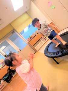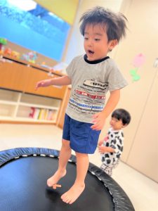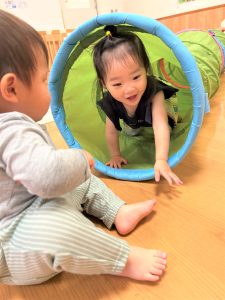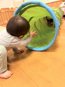 2025.08.01 ブログ 2025年6月 運動遊び 雨の日はお散歩にも水遊びもできないので、お部屋にトンネルや、トランポリン、滑り台をして運動あそびを楽しみました✨ トンネルから「バァ!!!」と出てきたり、お友だちを「おいでー!」と呼んでみたり、トランポリンでは少しずつ両足飛びにも慣れてジャンプが上手になってきた子どもたち、汗びっしょりになるまでたくさんあそびました😆 記事一覧へ戻る