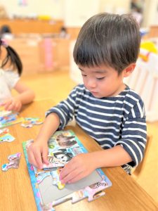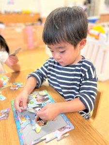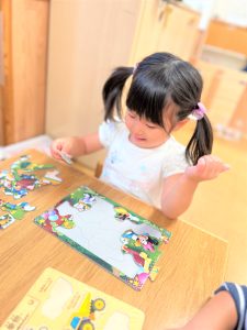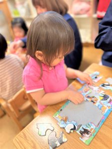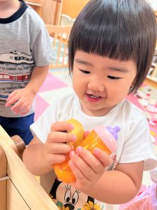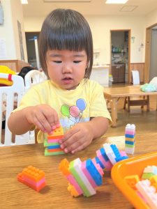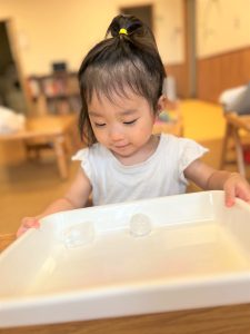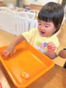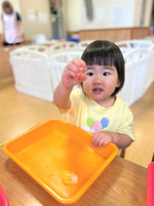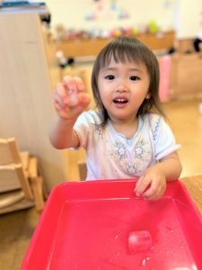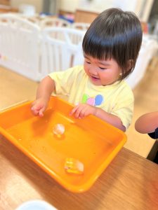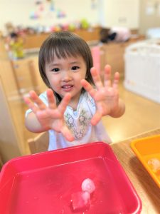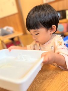 2025.08.01 ブログ 2025年6月 室内あそび 運動あそびの他にも、雨の日や水遊びの前後に机上遊び、パズル、氷遊びをしました🎵 氷遊びでは「つめたーい」と言いながら、手に持ったり、ほっぺたに付けて感触を楽しんでいました❄ 記事一覧へ戻る