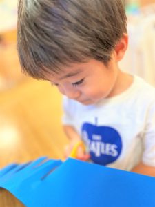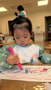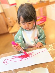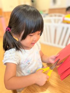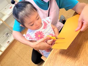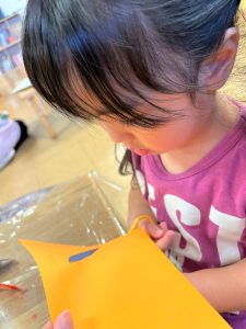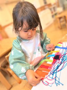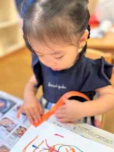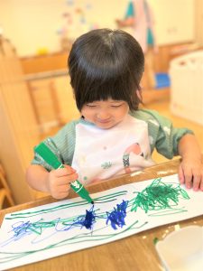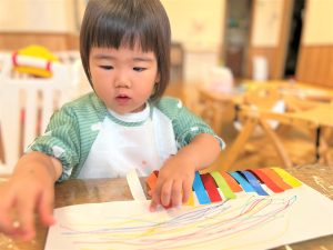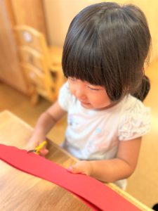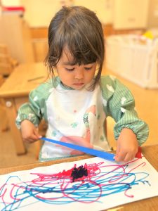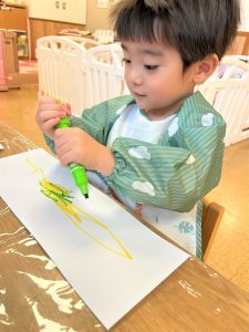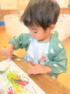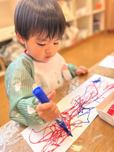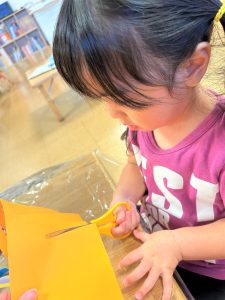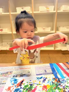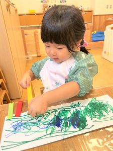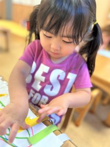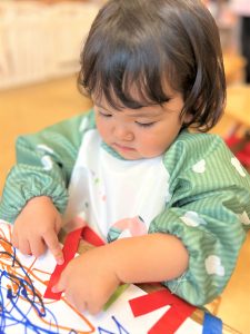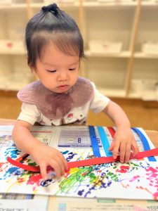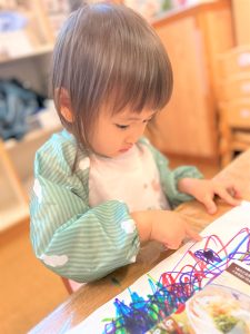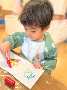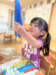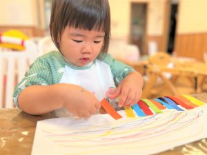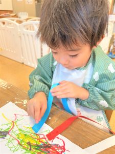 2025.08.01 ブログ 2025年6月 製作② 6月は製作をもう1つ…七夕製作をしました🎋 ひよこ組さんはタンポを使ってスタンプしました✨ うさぎ組さんとぞう組さんは白い画用紙に好きな色のペンを使い、絵を描いて… 長い紙テープを貼っていきました🎶 ぞう組さんはハサミにもチャレンジ! 完成の様子は7月のブログで載せたいと思います☺ 記事一覧へ戻る