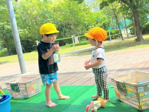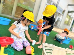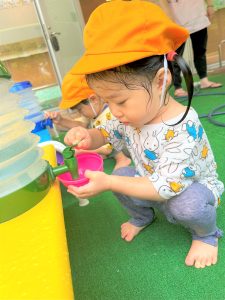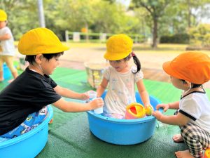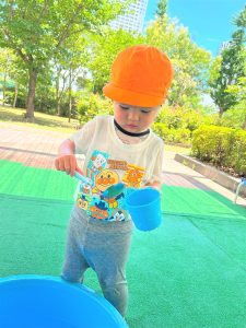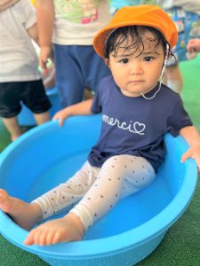お風呂みたいにタライの中に入ってみたり好きな遊びを楽しんでいました✨