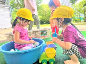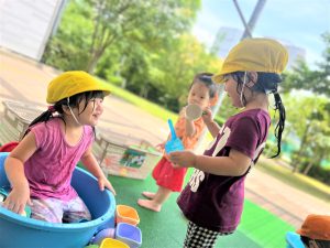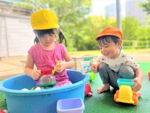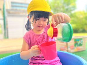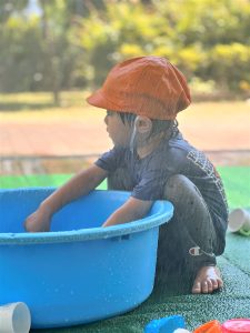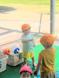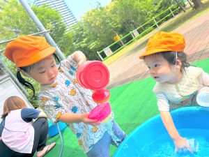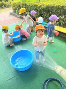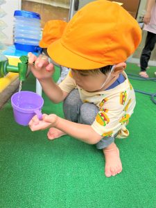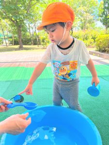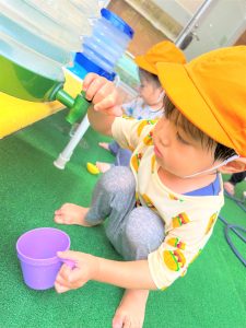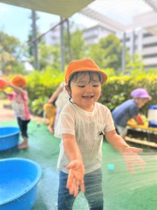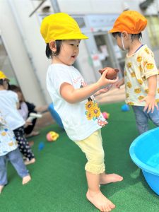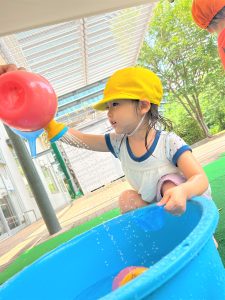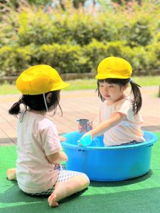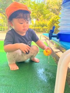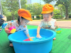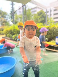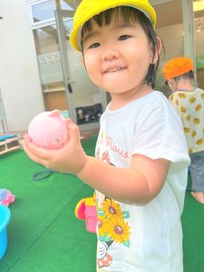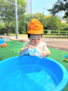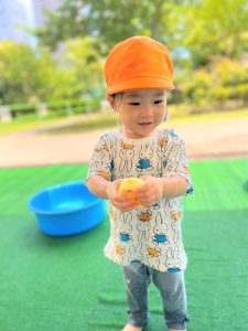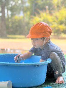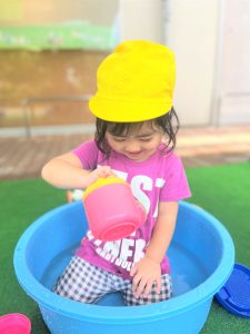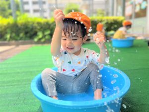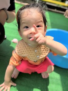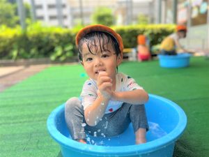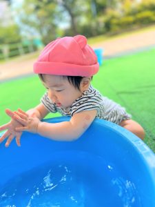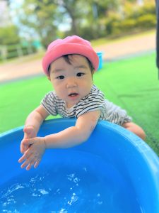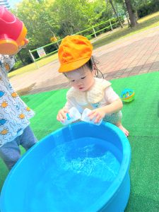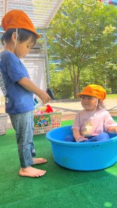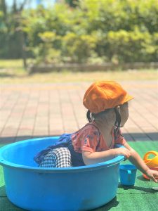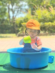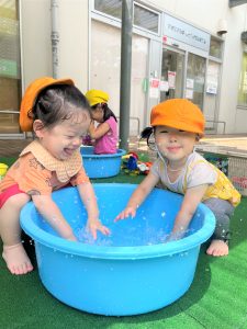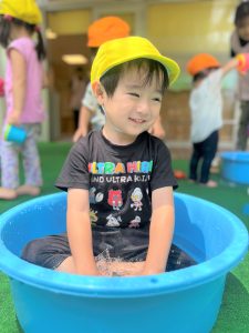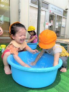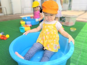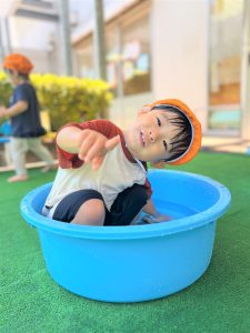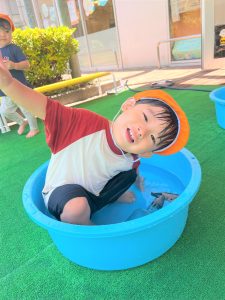 お風呂みたいにタライの中に入ってみたり好きな遊びを楽しんでいました✨