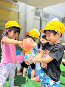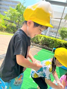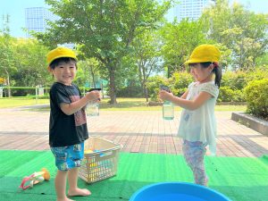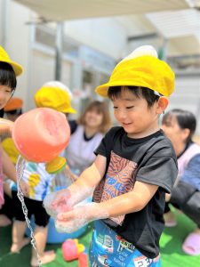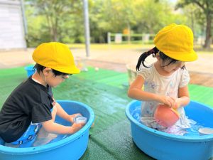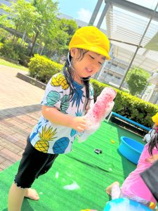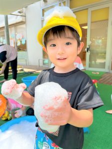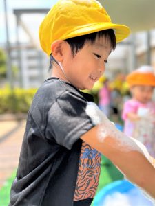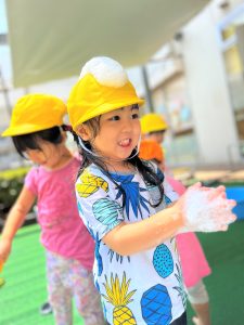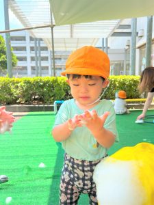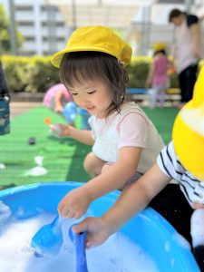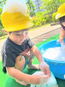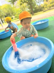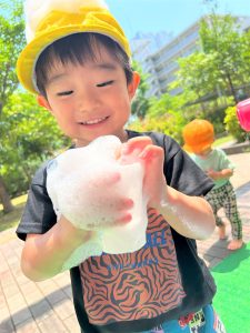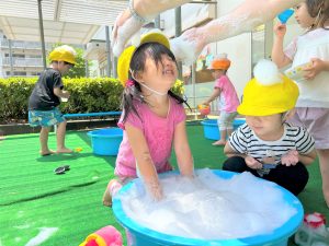 泡あそびも楽しみました😄ふわふわの泡に大喜びの子どもたちです♪