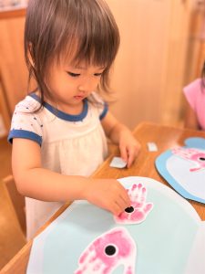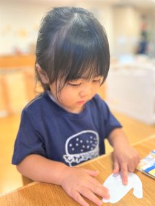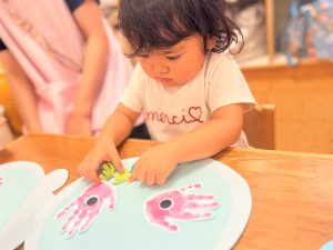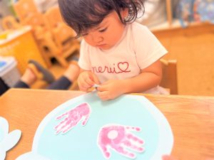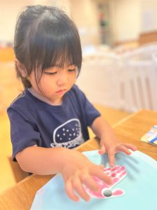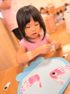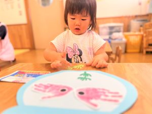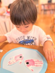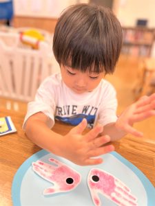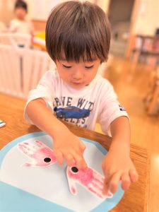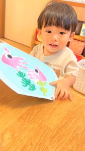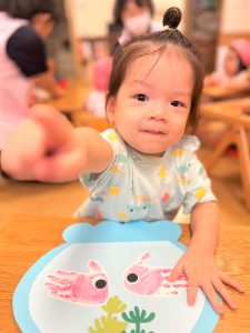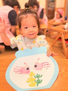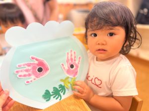 2025.08.04 ブログ 2025年7月 製作 7月の製作は金魚を作りました🐟 まずは手形を取って… 目をつけたら、金魚鉢の中に泳がせてから、水草も入れてあげました🪸 涼しげな7月の製作の完成です!!! 記事一覧へ戻る