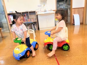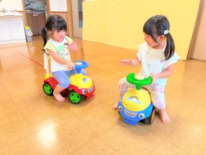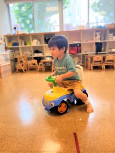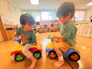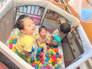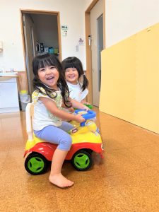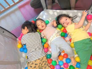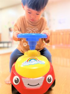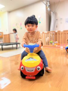 雨の日は室内にてマットやボールプール、トランポリン、コンビカーなどで体を動かしました🎶