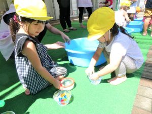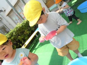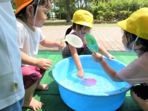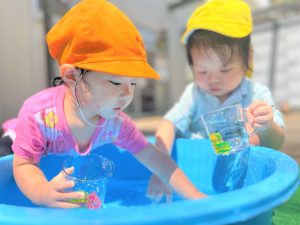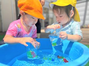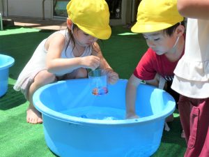 「水に入れたらどうなるかな~」と子どもたちなりに楽しんでいました✨