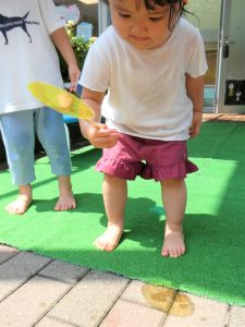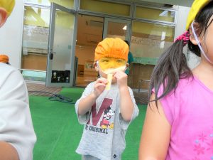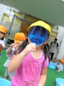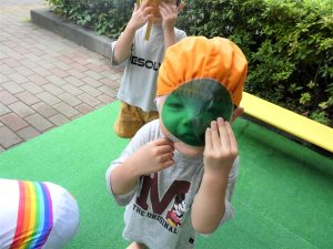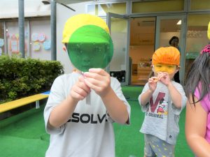 「じゃーん!!!」と自分の顔に当てて、何色に変わったか教えてくれたり、興味津々の子どもたちでした!