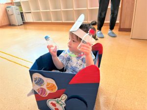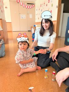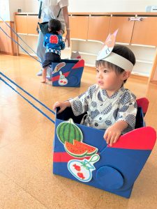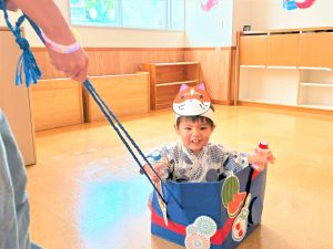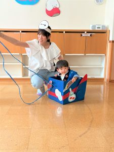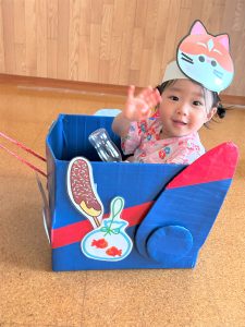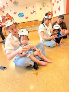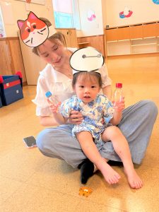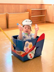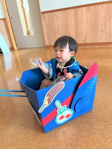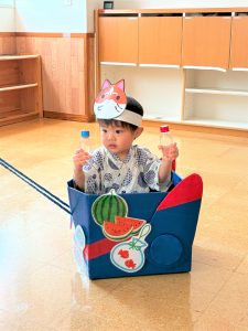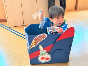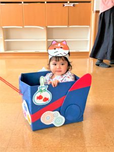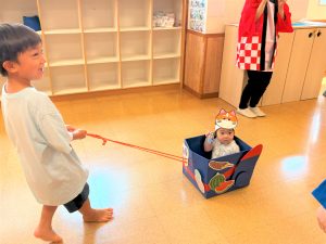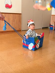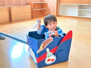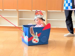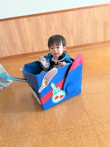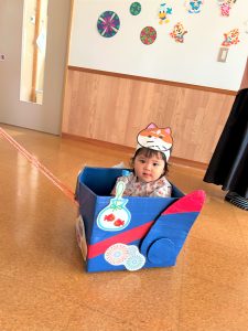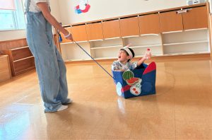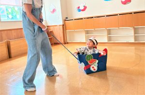 お父さん、お母さんに引っ張てもらい、音楽に合わせて、マラカスを振って楽しみました😄