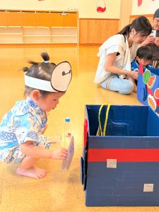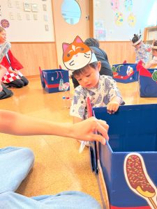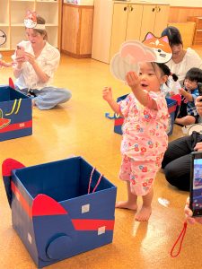 お面を被って夏祭りのスタート!