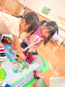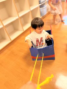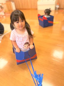 2025.10.14 ブログ 2025年8月 お部屋の様子 高気温の日は水遊びはお休みにして室内で過ごしたり、水遊び後も休息を取りながら、絵本や玩具など好きな遊びを楽しみました✨ サポート夏祭りの練習もしました!年上のお友だちや先生たちにライドを引っ張ってもらい楽しんでいた子どもたち🤭 ぞう組さんが踊るダンスの練習もみんなで踊り、ノリノリでした😝 記事一覧へ戻る