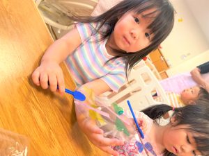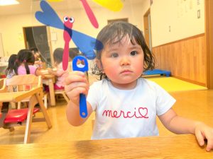 2025.10.14 ブログ 2025年9月 製作<トンボとリンゴのうちわ> 9月の製作はうさぎ組とぞう組はトンボの団扇を作りました🪭 ひよこ組は足形を使って、リンゴの団扇を作りました🍎足形を取ってる瞬間の写真は撮れずだったのですが、かわいいリンゴの団扇が出来ました😙 記事一覧へ戻る