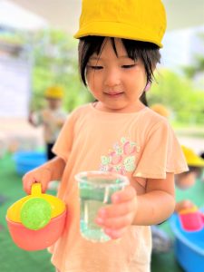 水遊び中にすくわくプログラムの一環として、「光と色...