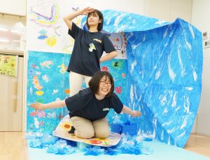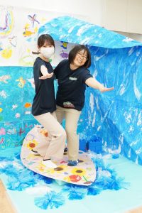 5歳児クラスが担当した写真コーナーは、サーフィンです🏄