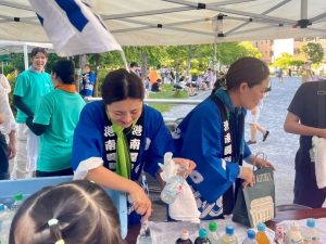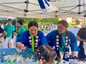 2025.07.30 アルバム 20250726 港南まつり 7月26日(土)に、子どもたちもよく散歩で遊びに行く『港南和楽公園』で港南地区の夏祭りがありました🏮 ゆらりんはぁとの先生はもちろん、近隣の系列園の先生たちも一緒にお手伝いに行き、今年も準備から屋台の売り子までお祭りを盛り上げました🍧 お祭中は在園児はもちろん、卒退園児にも会えて参加した先生たちもとても楽しかったそうです🎇 記事一覧へ戻る