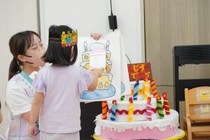 2025.10.14 アルバム 20250828 誕生会(8月生まれ) 8月28日(木)に8月生まれの子どもたちの誕生会をしました🎂 先生たちからのプレゼントは、「どんないろがすき?」のペープサートでした❣ 出てきた色のクレヨンで、誕生児たちが色を塗ると、すてきはバースデーケーキができあがりました🖍 おやつは「ココアプリン」🍮 給食の「チキンカツ」はパンにはさんでチキンカツサンドにして美味しく食べました✨ 8月生まれのみんな、お誕生日おめでとう🍰 記事一覧へ戻る
