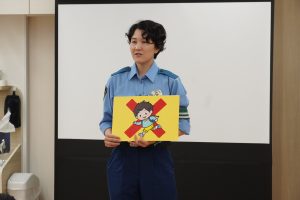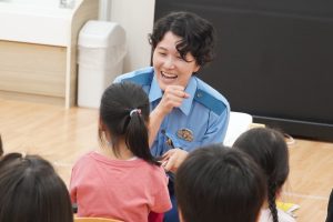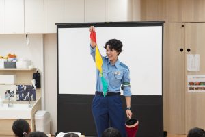 2025.10.14 アルバム 20250912 交通安全教室 今年も高輪警察署のお巡りさんに来てもらい、交通安全教室を行いました👮♀️交通安全のDVDを見た後、みんなの好きな色を集めて魔法をかけると…… なんと赤・黄・青の信号機カラーが登場🚥 2人ずつ横断歩道を渡る練習もしました🚥緊張しながらも、「右を見て、左を見て、もう一回右を見て・・・」と真剣な表情で横断歩道を渡り、渡りきると満面の笑みをみせてくれました✨ でも、子どもたちが一番目を輝かせていたのは“おみやげ”の話を聞いたときでした✨ 記事一覧へ戻る