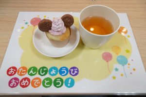 おやつは「マフィンケーキ」🍓と「リンゴジュース」🍎子どもたちも「かわいい」と大喜びでした🧁