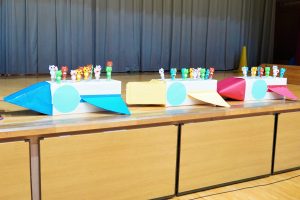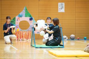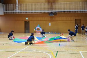 2025.10.14 アルバム 20250927 運動会 🚀9月27日(土)港区立港南小学校の体育館で運動会を行いました🌙今年は‟宇宙”がテーマ🌎各クラスの制作は、宇宙に関連したものを年齢に合った方法で製作し、入場門や退場門、会場を飾りました🪐5歳児クラスの鼓笛で入場し、日頃から課外保育でがんばっている体操など成果を見てもらったり、大好きなかけっこやパラバルーンをしたり🌟各クラスの親子競技も、子どもたちの笑顔で溢れ、今年の4・5歳児のリレーも白熱した戦いが繰り広げられました🌠毎年恒例、先生たちときょうだいじ児とのリレーは大接戦🎖今年は幼児クラスの年齢の子もいたため、先生チームは半周のハンデを付けてスタート!序盤で先生チームが逆転、中盤では大差もつき先生チームの3連勝かと思われましたが、アンカー直前できょうだい児チームに追いつかれそのまま逆転、今年はきょうだい児チームの勝利となりました☀️子どもも大人も、みんなでいっぱい身体を動かした一日でした🏆 記事一覧へ戻る