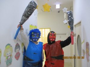 「おには~そと~」と豆まき気分を味わいました♪
